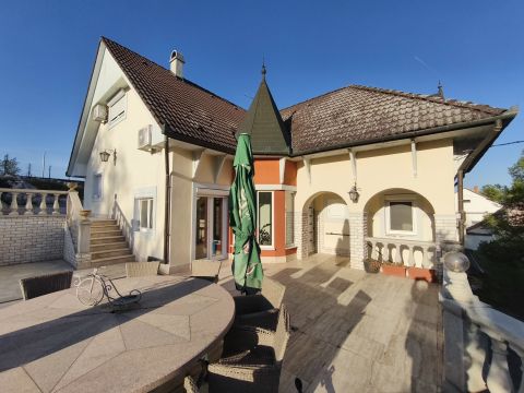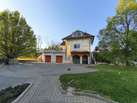 1989-ben épült, építése óta átesett bővítésen is, így érte el jelenlegi formáját. A szinteltolásos kialakítású lakóház tágas lakóterű, amelyhez alagsori szint kapcsolódik garázsokkal és kiszolgáló helyiségekkel. A nagy belmagasságú, napfényes nappali mellett 4 hálószoba található, a szülői háló gardróbbal egészül ki és az egyik szobához szintén tartozik gardrób. A ház része egy hangulatos borospince is, amely hobbihelyiségként is kiválóan használható.
