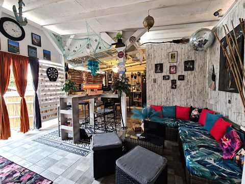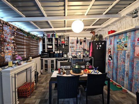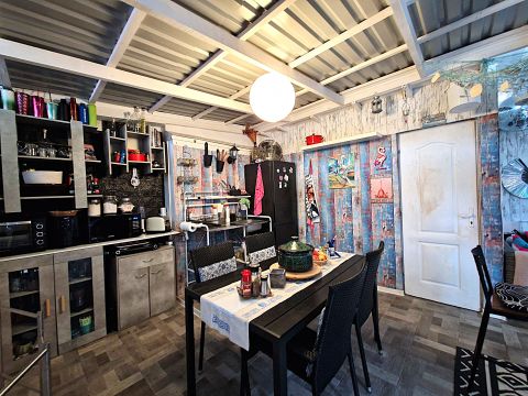 A külön lakrészben : kialakításra került egy fürdőszoba zuhanyzókabinnal, a meleget törölközőszárító adja. A szobában a fűtés elektromosan megoldott. A lakószoba szerkezete tégla , a többi helyiség könnyűszerkezetes, fedése trapézlemez.  a melegvizet villanybojler biztosítja.