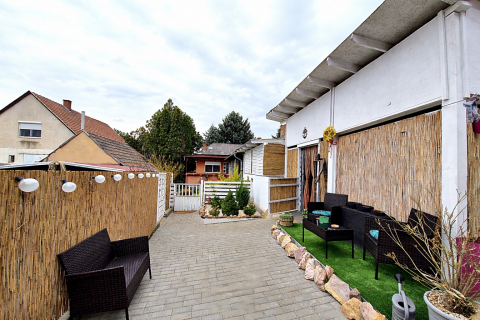 A házhoz tartozik még egy 21m2 hatalmas , gyönyörű terasz, mely megfelelő helyet biztosít a családi rendezvényeknek.