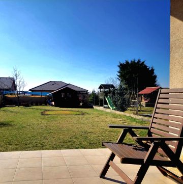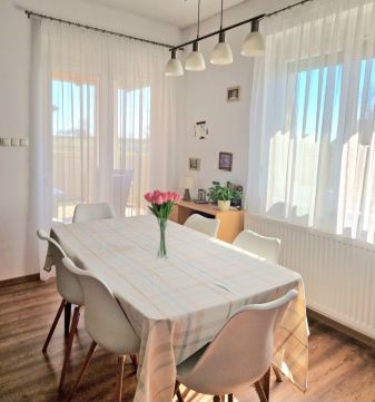 Tágas, világos nappali közvetlen kertkapcsolattal