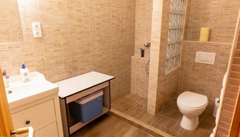- Teljes értékű fürdőszoba zuhanyzóval és WC-vel