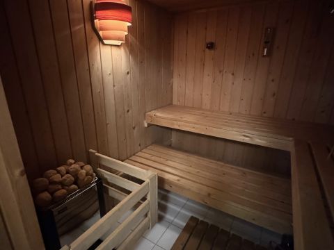 A félszuterén szinten 32 m²-es garázs, külön kazánház, egy nappali vagy játszószoba, a háztartási helyiség, valamint a szauna, a hozzátartozó zuhanyzóval található.