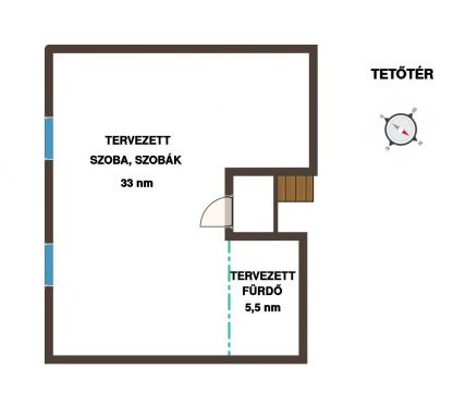 A 40 nm-es tetőtérben két szoba és fürdőszoba előkészítése megtörtént.