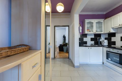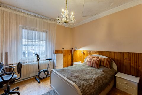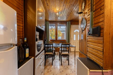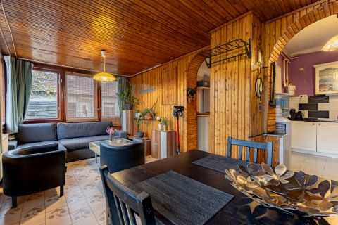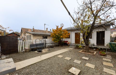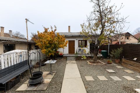Az ingatlan csendes, átmenő forgalommentes, aszfaltozott utcában helyezkedik el, egyedi kialakításának köszönhetően egyszerre kínál egy családi otthont és külön álló tereket. A fő épület szigetelt és átlagos állapotú, ami egy kis törődéssel hibátlan otthon lehet. A hátsó udvarra nyíló amerikai konyhás nappali biztosítja a csendet és a nyugalmat a három hálószoba pedig az intim szférát a család minden tagja számára. A ház nappalija, konyhája és vizes helyiségei kerámiával burkoltak, szobái parkettával. A fő épület fűtését cirkófűtés biztosítja, hő leadói lemez radiátorok.
