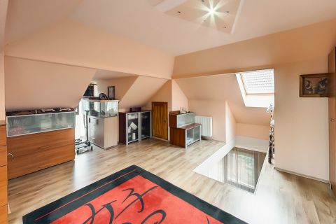 Az emeleti szintet pár évvel ezelőtt építették be és itt egy kivételes nagyságű hálószoba és egy nappali található ami alkalmas további szoba kialakítására is.
