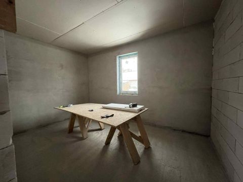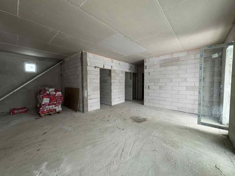 A falazat 30 cm Porotherm, a válaszfalak 10 cm Ytong, a homlokzati szigetelés 15 cm, a födémszigetelés 25 cm, a tető antracit betoncserép, a homlokzat fehér. Háromrétegű műanyag nyílászárók és minőségi bejárati ajtó kerül beépítésre.