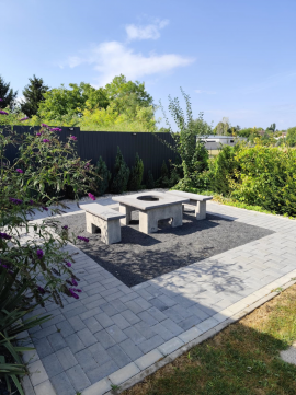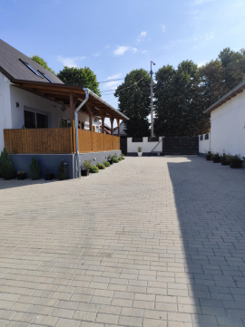 -Elektromos kapu könnyíti a kocsibeállást a 300 m2 viakolorral térkövezett udvarra
