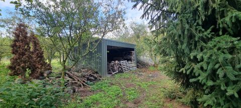 A házhoz kapcsolódik egy 45 m²-es, szigetelt, elektromos árammal ellátott, akár 4 autó beállására alkalmas garázs, automata szekcionált kapuval.
