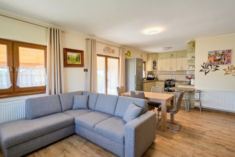A nappaliból nyílik a parkosított kertre néző 30 nm-es fedett terasz, amely igazi kikapcsolódást nyújthat az egész család számára. De ha valakinek több szobára lenne szükség és szeretné bővíteni az ingatlant, akkor terasz teteje is szigetelt és az összes szükséges közmű kiállás megvan a teraszon, így kényelmesen, gyorsan beépíthető.