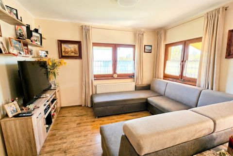 A saját részre épített ingatlan ikerház ahol a másik felet is a tulajdonos építette és a két dupla főfal között egy speciális hanggátló szigetelés van. A másik fele tükörképe ennek az ingatlannak és akár EGYBEN IS ELADÓ A 2 RÉSZ.