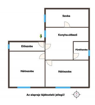 Az ingatlan utcafronti részén két különnyíló, keleti tájolású hálószoba található, amelyekbe a reggeli napfény kellemes, világos hangulatot teremt. A fürdőszoba és a WC egy helyiségben kapott helyet. A tágas folyosóról nyílik a konyha és az étkező, amely a mindennapok központi tere lehet. A konyhából érhető el egy harmadik szoba, amely jelenleg befejezésre vár, így új tulajdonosa saját elképzelése szerint alakíthatja ki, legyen szó dolgozószobáról vagy vendégszobáról. Az elmúlt 5 évben kétrétegű műanyag nyílászárók kerültek beépítésre. A ház fűtése vegyestüzelésű kazánnal és gázkazánnal is megoldott.