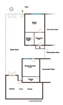 A házrész saját nagykaput és udvarrészt használ, kizárólagosan. A hátsó lakás tulajdonosa kizárólag csak a ház melletti járdát használja.