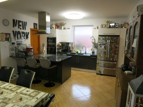 A nappali kristálycsillártól úszik fényárban! Az ablakokon alumínium redőnyök fokozzák a biztonságot! Egyedileg gyártott faajtók kerültek beépítésre mindenhol.