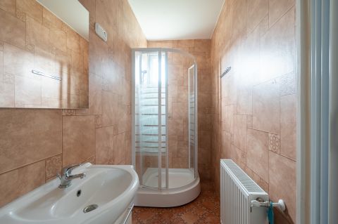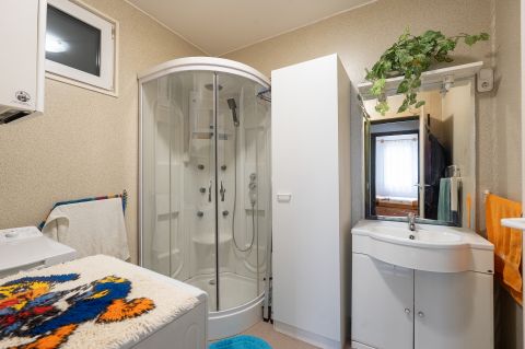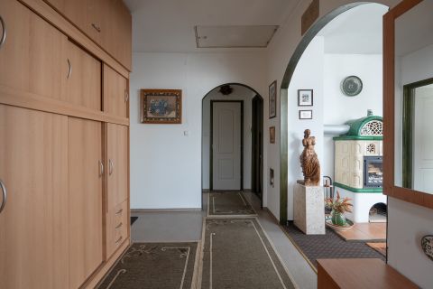A ház egyik különlegessége az igényesen kialakított cserépkályha, amely nemcsak a nappali dísze, de az otthon valódi melegét is árasztja. A komfortról emellett padlófűtés gondoskodik. Az ingatlan összközműves, a fürdő zuhanyzóval felszerelt, a WC pedig külön helyiségben kapott helyet. Az autók biztonságáról két gépkocsitároló is gondoskodik.