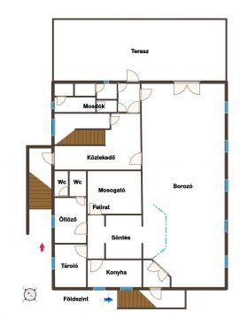 Alsó szint: mosdók, raktárhelyiségek, valamint egykor működő borozó/vendéglátóegység, amely igény szerint könnyen újranyitható vagy más funkcióra átalakítható.