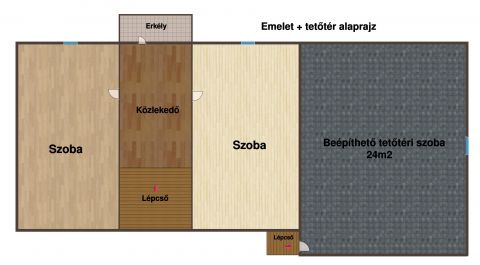Az ingatlan 1989-ben épült, 120 m²-es, belső szinteltolásos kialakítású, nappali plusz három szobás jelenleg, de plusz egy nagy tetőtéri szoba kialakítására van lehetőség.