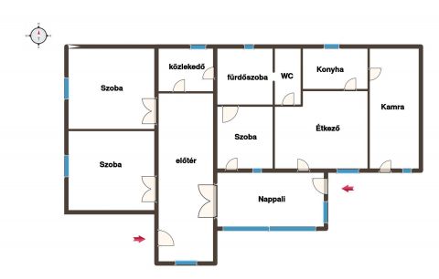 A ház helyiségei: