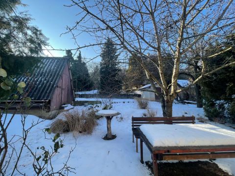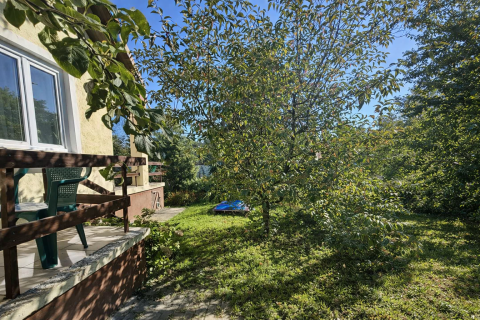 A nagy méretű, gondozott kertben gyümölcsfák és zöldségek találhatók, ideális választás kertészkedőknek vagy természetközeli életformát keresőknek.