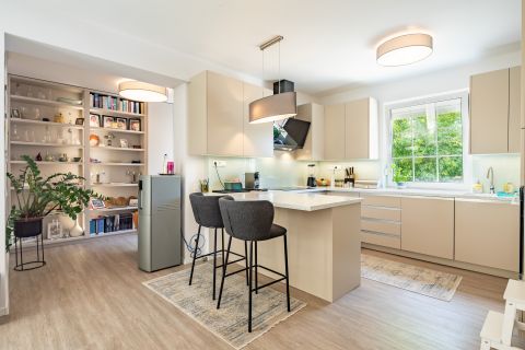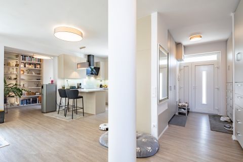 *    világos, tágas amerikai konyhás nappali