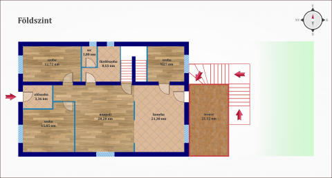 A Pilis hegység lábánál elterülő, izgalmas történelméről és gazdag hévízforrásairól is ismert Esztergomot a Dunakanyar legfelsőbb városának is szokták nevezni. A mesés város nyugodt, csendes utcájában található a 220nm alapterületű, 2005-ös építésű háromszintes családi ház. Az ingatlan ízlésesen felújított alsó szintjén található három szoba, egy amerikai konyhás nappali, illetve a zuhanyzós fürdőszoba, melyben a mellékhelyiség elszeparálva található. A nappali meghitt légkörét a hangulatos kandalló teszi varázslatossá. A konyha teljes körűen gépesített és beépített, ezzel is megtartva a faerezetes és fehér burkolatok harmonikus egységét. A konyhából nyíló, hátsó kertre néző, hozzávetőlegesen 25nm-es terasz egyaránt alkalmas kellemes kikapcsolódásra és kerti partik megtartására. A füvesített kert zölden tartásáért automata öntözőrendszer felel, melyhez a vizet fúrt kút biztosítja.