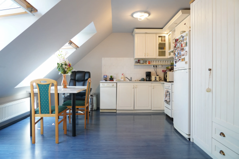 A 2. lakás tágas konyha - nappalival, fürdőszobával és szobával rendelkezik.