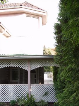 A térkővel borított udvarra gyalogkapun vagy extra széles úszókapun keresztül juthatunk, itt kényelmesen 4 autó elfér, a ház előtt pedig további 4 parkolhat. A ház mindkét bejárata a kíváncsi szemektől rejtve, az utcáról nem láthatóan hátulról mehetünk be a főbejáraton. Felette nagy területű szaletli védi a hazaérkezőt és vendégeit az esőtől, széltől. A főbejáraton belépve a három szintet kiszolgáló lépcsőházba jutunk, így igény szerint könnyen 3 lakásos társasházzá is alakítható az épület, vagy akár többgeneráció számára is átalakítható.