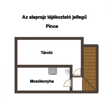A ház alatt található egy két helyiségből álló pince, melynek egyik része mosókonyhaként funkcionál kiváló tárolási és háztartási lehetőségeket kínálva.