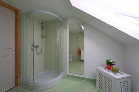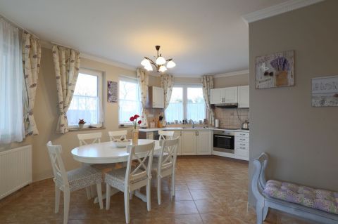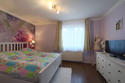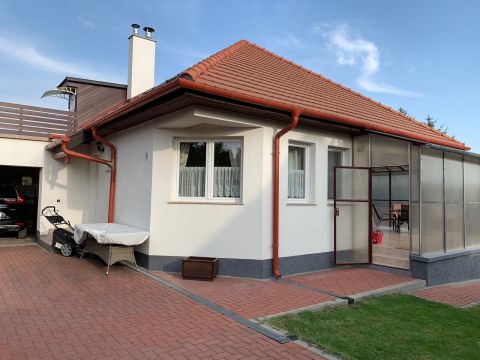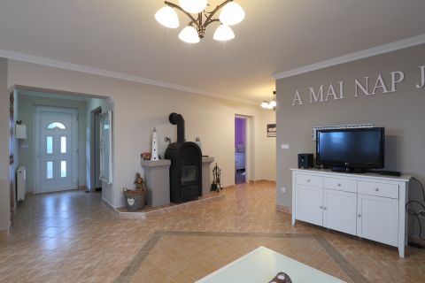 A földszinten tágas nappali-konyha fogadja a belépőt, amelyhez két kényelmes hálószoba, fürdőszoba, külön WC, spájz, előtér és egy téliesített terasz kapcsolódik. A tetőtérben szintén két hálószoba, egy fürdőszoba, nagy, világos előtér és egy hangulatos terasz került kialakításra. A ház mindkét szintje klimatizált, a földszint fűtését pedig vízteres kandalló biztosítja, amely radiátorokon keresztül teremti meg a kellemes meleget a hűvösebb hónapokban is.