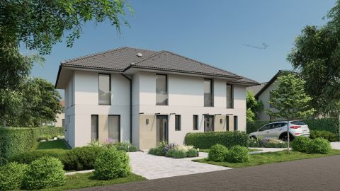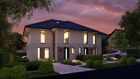 Új építésű, kétszintes ikerház