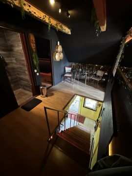 2024-ben a felső szint teljeskörűen fel lett újítva. A szobákban beépített szekrények találhatók. Az álgerendában led világítás fut, amely kellemes hangulatot és világítást kölcsönös az emelet helyiségeinek.