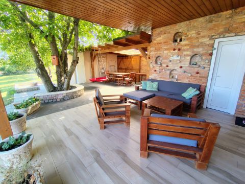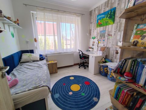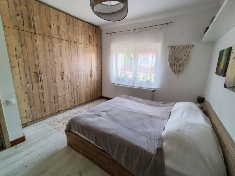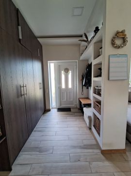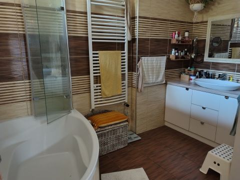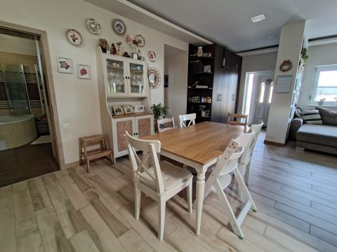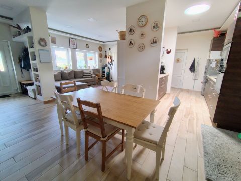 Az ingatlan elektromos fűtéses és 8 KW napkollektorral ellátott, tégla szerkezetű, 15 cm-es szigeteléssel rendelkezik, amely modern amerikai konyhás nappalival és további 3 hálószobával büszkélkedhet. Az ingatlanhoz tartozik még egy 30 nm-es fedett terasz , és egy mosó-konyha mellékhelyiséggel is , amely alatt pince található. Kialakításának köszönhetően nem csak az ingatlanból , hanem a teraszról is megközelíthető , így meghitt családi összejövetelnél praktikus is egyben .
