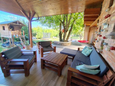 A nappali központi része a háznak, ahol a család és a barátok összegyűlhetnek. A napfény bőségesen árad be a nagy ablakokon keresztül,így teremtve egy meleg és vendégszerető légkört. Az amerikai konyha praktikus és jól felszerelt, ideális teret nyújt a mindennapi étkezésekhez és a különleges alkalmakhoz egyaránt.Ez a gyönyörű ingatlan nem csak kényelmes és gazdaságos otthont biztosít, hanem egyben befektetési lehetőségként is kitűnő választás.A hozzá tartozó kert 1072 m2, ahol egy ásott kút és egy 9m2 tároló/ kutyakennel is helyet kapott.