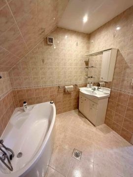 2 szint, 5 szoba, 2 nappali, 3 fürdőszoba+WC, 2 garázs, rendezett telek!