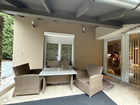 A gondozott zöld területet automata öntözőrendszer, sziklakert, automata kapu és fűtött garázsfeljáró teszi még kényelmesebbé.