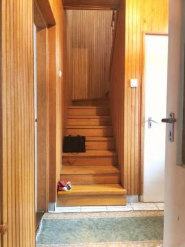 Egy szép állapotú fa lépcső vezet fel az emeleti szintre.