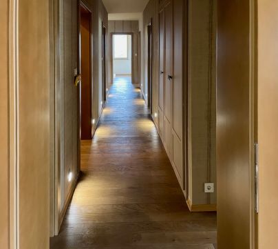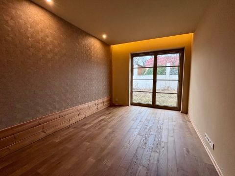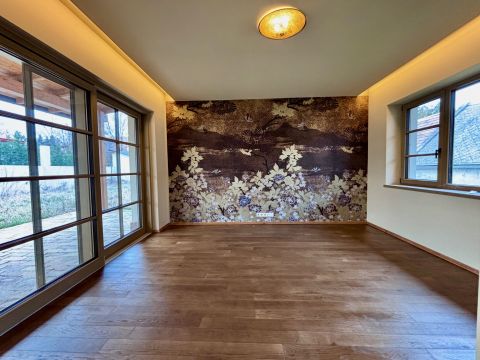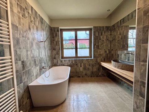 Az otthonban minden részletre odafigyeltek. A belső tér magában foglalja a legfinomabb anyagokat: vörösfenyő egyedi beépített bútorokat, prémium padlóburkolatokat, kiváló minőségű szaniterekkel felszerelt fürdőszobát, és a konyhában beépített Miele gépet, valamint egy különleges Hass and Sohn sparheltot.