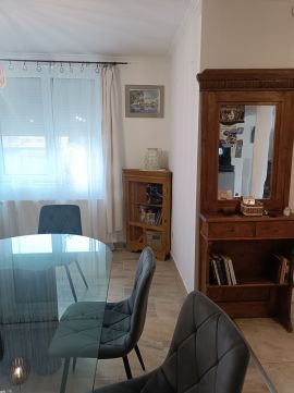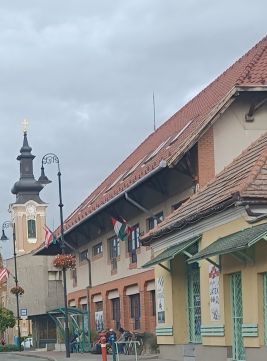 A környék rendezett, csendes, mégis minden elérhető közelségben van: a Duna, a termálfürdő, a piac, a kis kávézók.