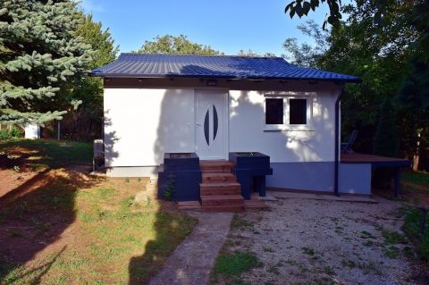 Velem rendkívül csendes, forgalomtól mentes, erdővel körül ölelt részén, a Fagyöngy utcában eladó egy belterületi, hétvégi házas részen elhelyezkedő, új állapotú, energiatakarékos, könnyűszerkezetes családi ház, mely egy 539 nm-es, sík telken helyezkedik el.
