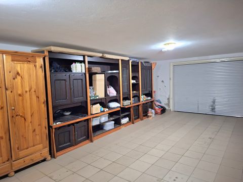 A pincében automata kapus, akár 4 autó elhelyezésére is alkalmas garázs, tárolók és kazánház kapott helyet.