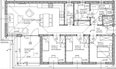 A nappaliból kilépve egy hangulatos, fedett terasz tárul elénk, mely tökéletes helyszíne a reggeli kávénak vagy az esti pihenésnek. A gondosan karbantartott, rendezett udvar harmonikus környezetet teremt, amely még tovább növeli az otthon értékét.