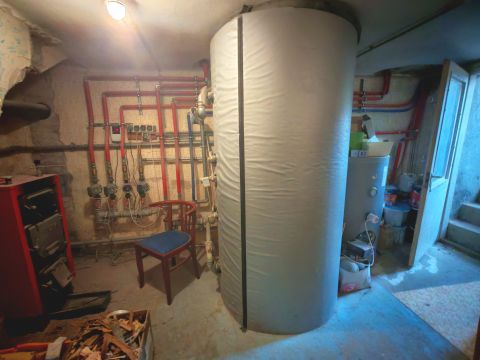 A pincében kapott  helyet  a fűtési rendszer (vegyestüzelésű kazán /TOTYA/, 800 literes puffertartály, HMV-bojler), valamint egy hangulatos kis téli kert is.