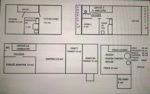 A tetőtérben további két szoba és egy fürdőszoba található.