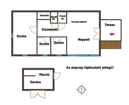 Külön bejáratú garázs, kert elosztású.