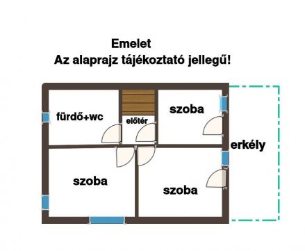 Az emeleti szintre kényelmes lépcsőn jutunk fel, három hálószoba, fürdőszoba+wc, várja új tulajdonosait.
