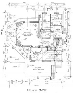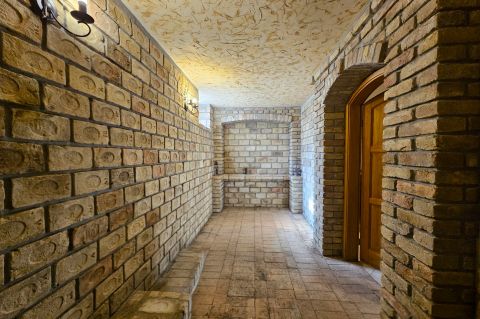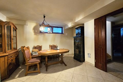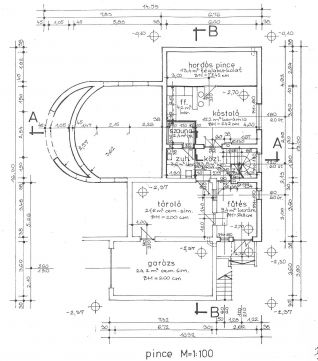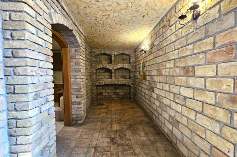 Az alagsori szint önálló, igényesen kialakított funkciókat kapott: borospince, szauna, konyha, társasági tér, több tárolóhelyiség, valamint egy nagyméretű garázs található itt. Ezek a terek nem utólagos megoldások, hanem tudatosan megtervezett, jól használható helyiségek.