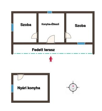 - a ház 2 szoba konyhás, lakótér 50 nm