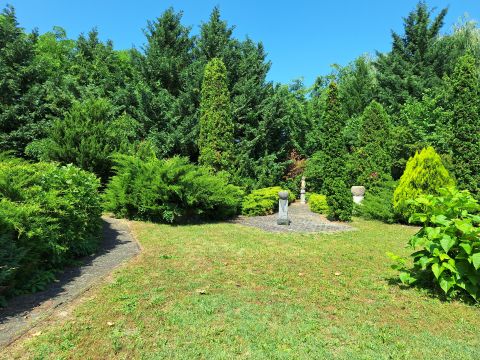 3090 m2, gyönyörűen parkosított kert, tele örökzöldekkel, cserjékkel, stb,