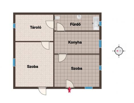 Azonban az elkészült rész lakható, használható, nettó 50 nm-en került kialakításra két szoba, konyha, fürdő és tárolóhelyiség, cirkós központi fűtéssel.