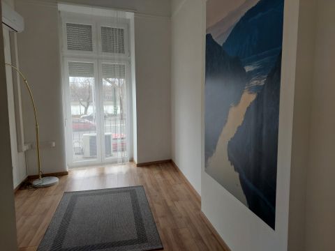 Mind a 8 szoba külön bejáratú. A világos előszoba és a tágas közlekedő akár várónak is használhatók. A budai nagypolgári lakások belmagassága adja meg az eleganciáját ennek az irodának.