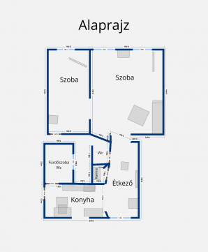 - 60 m²-es, tágas elrendezés